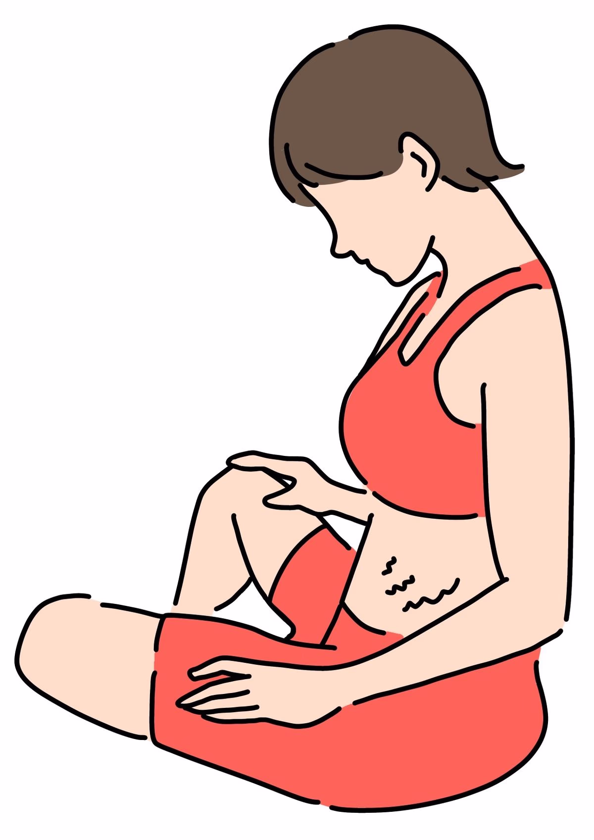 妊娠中、おへその上下にまっすぐ現れる茶色い線を「正中線」といいます。