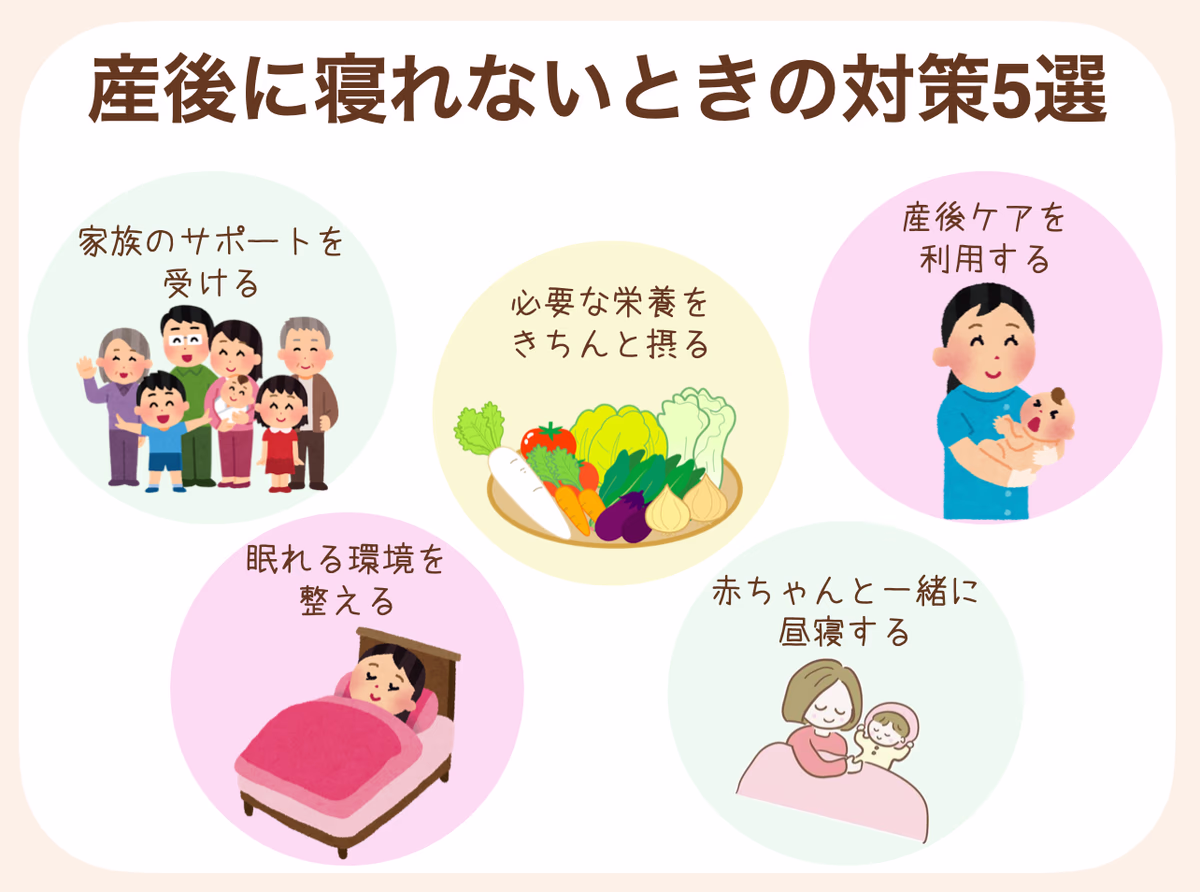 ここでは、助産師がおすすめする産後に寝れないときの対策5選を紹介します。