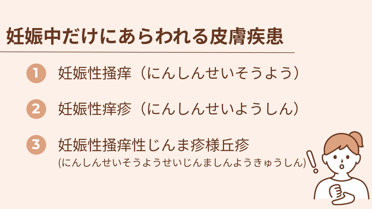 妊婦さんのつらいかゆみは、妊娠特有の皮膚疾患である可能性もあります。