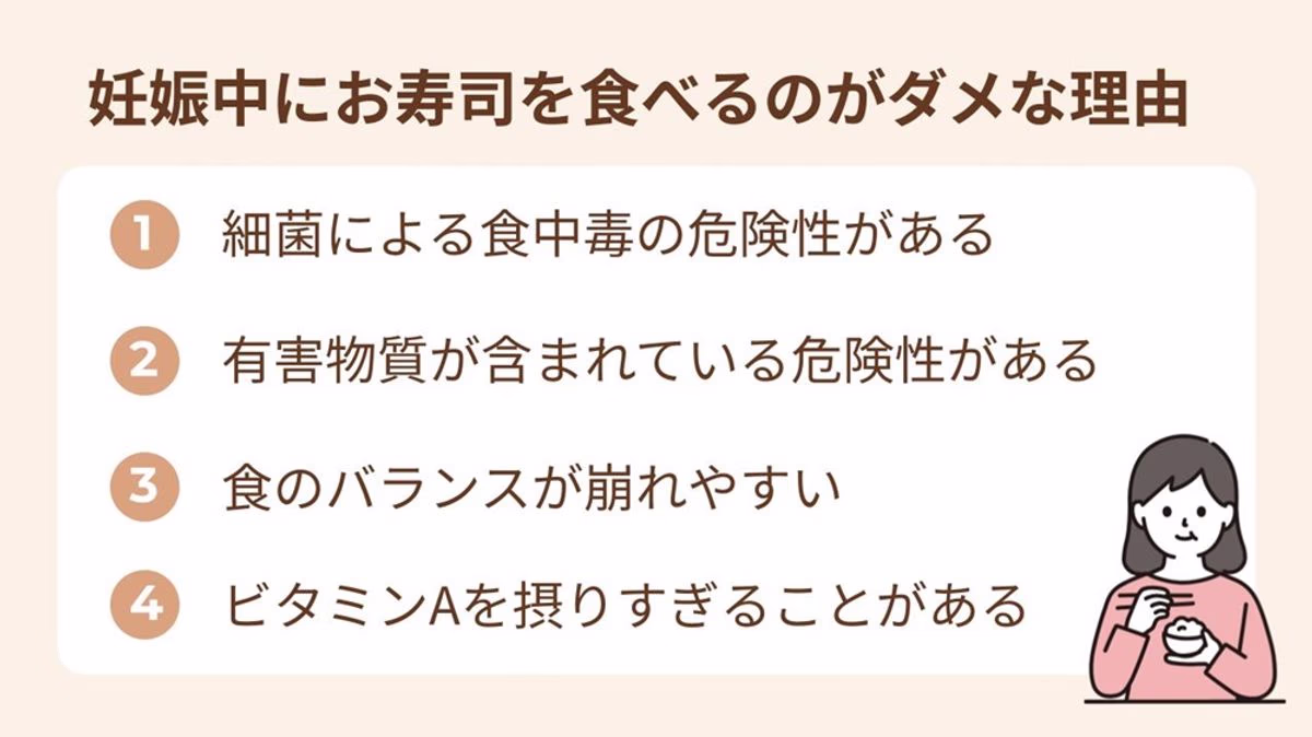 ここでは、妊娠中にお寿司を食べてはいけない理由や、お寿司を食べる時の注意点について解説します。