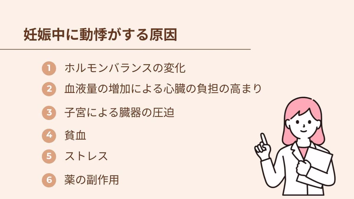 同じ動悸の症状でも、妊娠初期〜妊娠後期の各段階で考えられる原因が異なる点には注意が必要です。