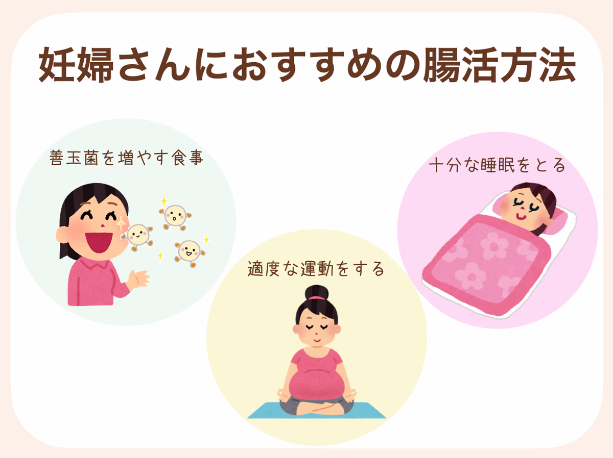 腸活をすることで便秘を解消・予防でき、切迫早産の予防にもつながります。