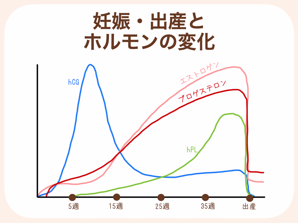 妊娠中はカラダの中で、様々なホルモンの分泌量が変化します。
