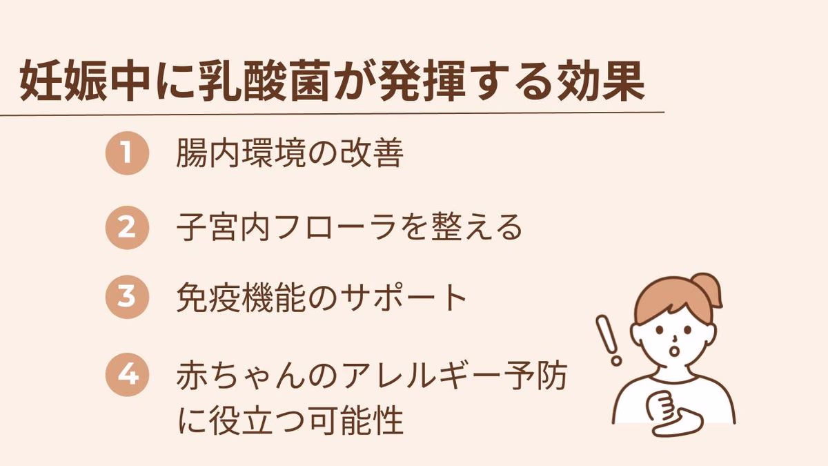 妊娠中に乳酸菌をとることで得られる効果はこちらの4つ。