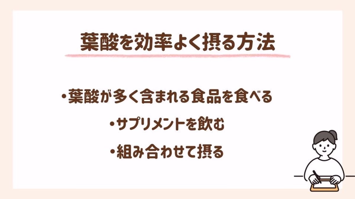 ここでは、必要な葉酸量を無理なく効率よく摂るための方法を3つ紹介します。