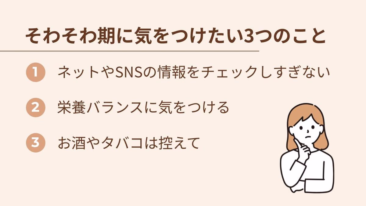 心の負担を増やさないために、そわそわ期には気をつけたいこともあります。