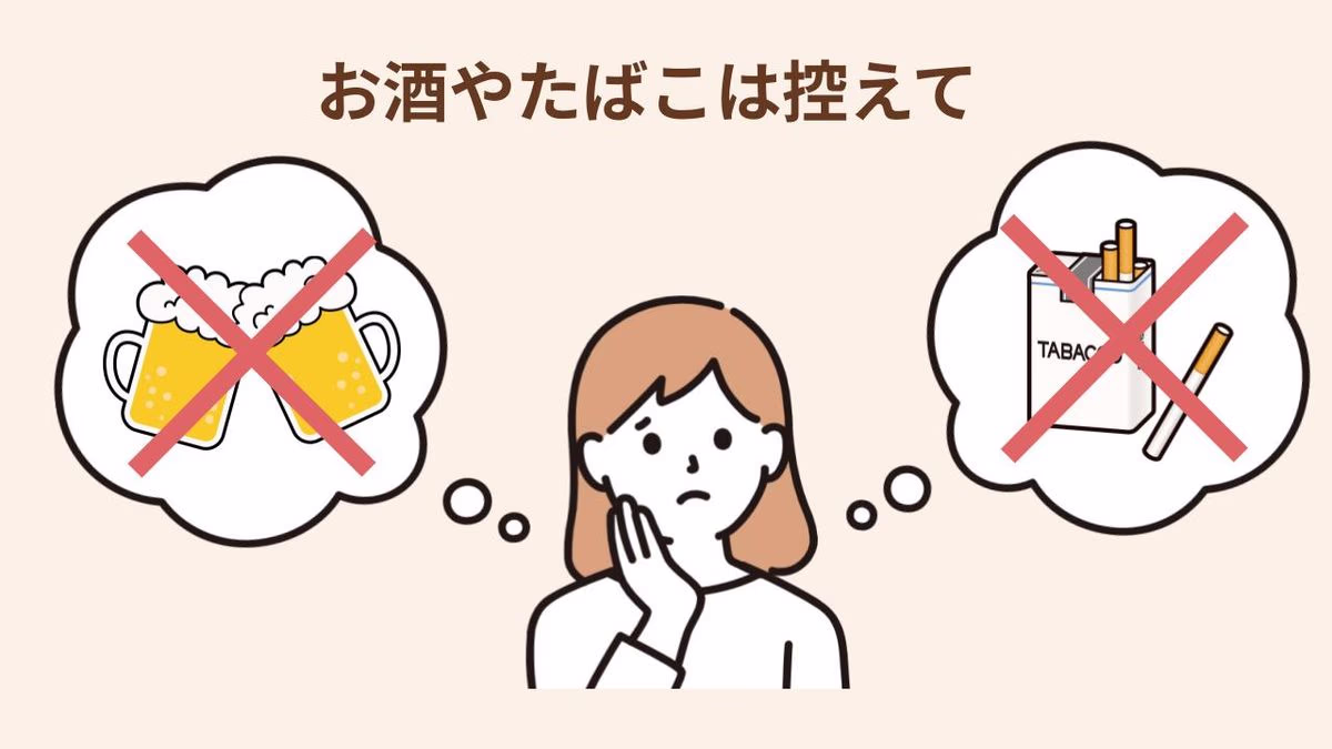 もし妊娠していた場合、アルコールやたばこに含まれる成分は、胎児の発育に影響を与え、先天性障害のリスクを高める可能性があります。また、喫煙や過度な飲酒は、妊娠しにくくなる要因になることも。