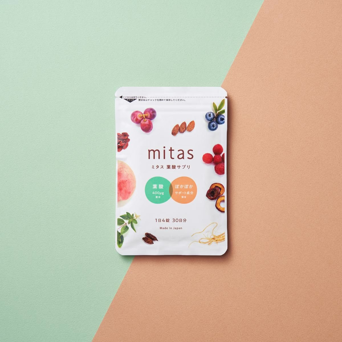 葉酸サプリのmitasは、妊活中から必要な葉酸量400μgのほか、ビタミンやミネラルなどの豊富な栄養素を含んでいます。