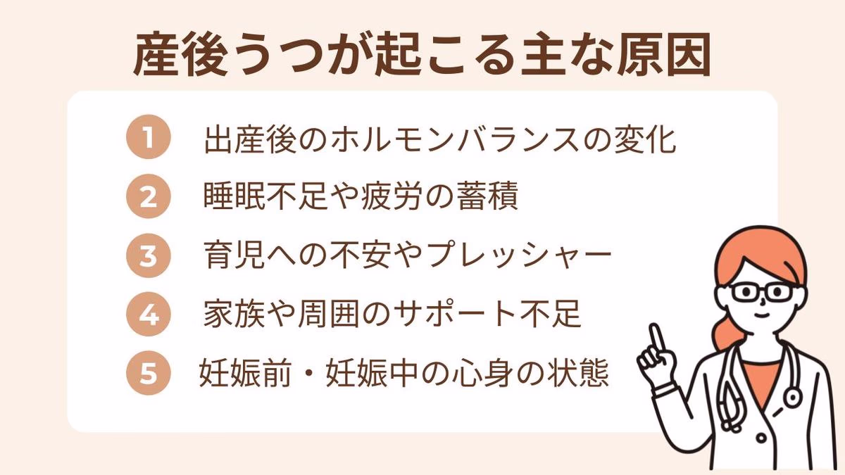 産後うつは、ひとつの理由だけで起こるものではありません。「どうしてこうなってしまったんだろう」と感じる方もいるかもしれませんが、背景にはいくつもの要因があります。
