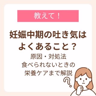 妊娠中期は腹痛以外にも気になる症状が出やすい時期。吐き気が気になる方はこちらの記事をチェックしてみてください。