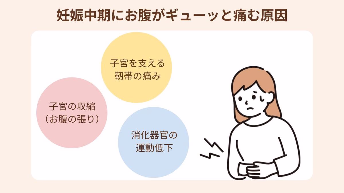 妊娠中期に感じる「お腹がギューッとする痛み」には、いくつかの原因があります。