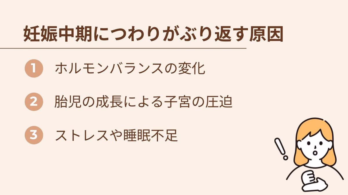 体の変化やストレスなど、さまざまな要因が関係している中期のつわり。ここからは、つわりのぶり返しが起こる具体的な原因を見ていきましょう。