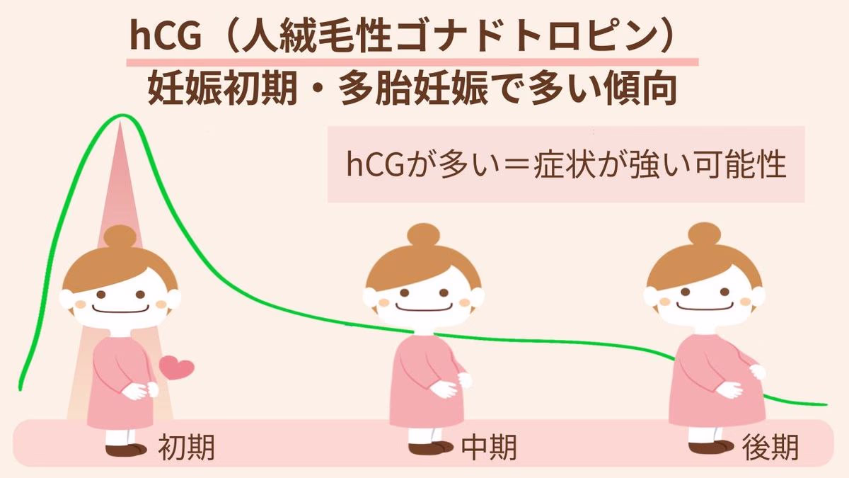 妊娠初期には、赤ちゃんを育てるためにhCG(人絨毛性ゴナドトロピン)というホルモンが多く分泌されます。