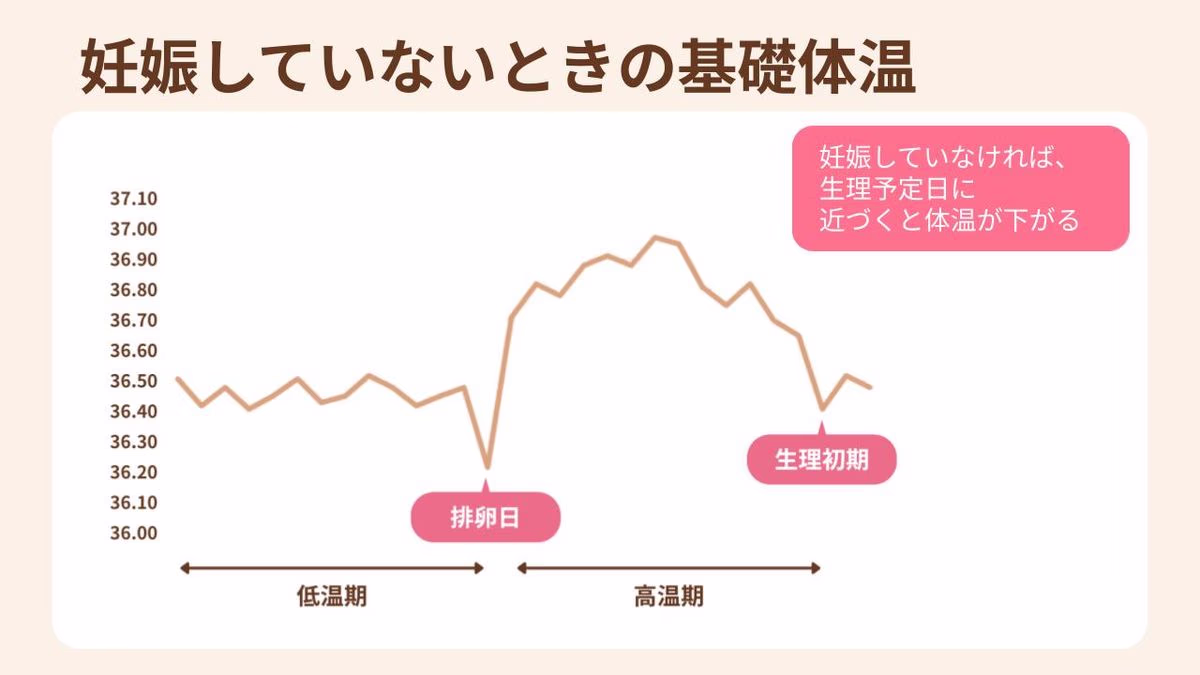 妊娠が成立しなければ、排卵後に高くなっていた体温は、生理が近づくとともにだんだんと下がり始めます。