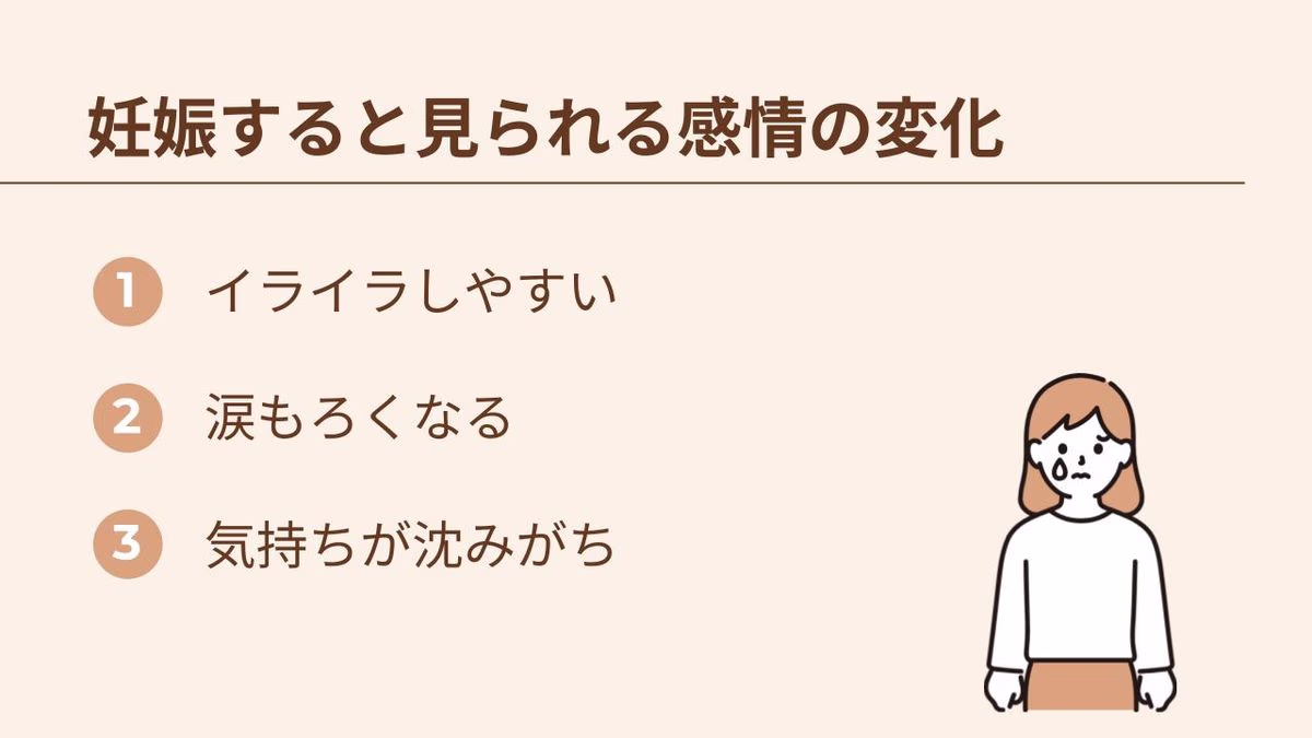 妊娠超初期は感情の起伏が激しくなることがあります。妊娠によってホルモンのバランスが崩れるため、精神が不安定になりがちです。
