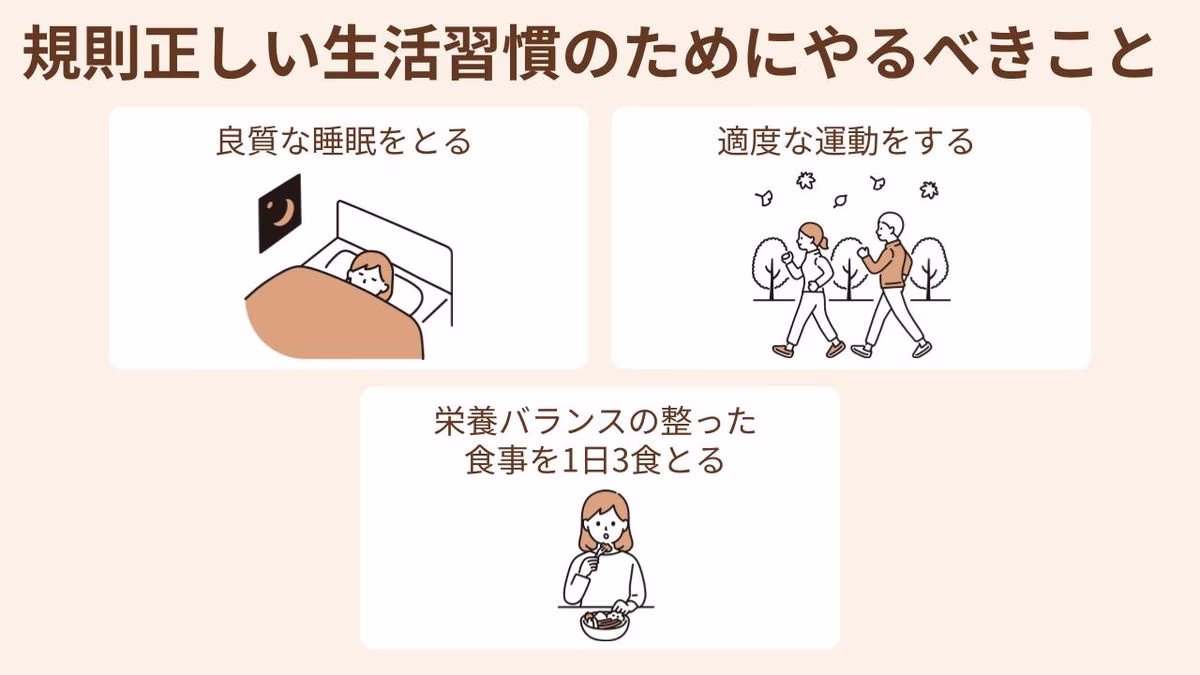 また、適度な運動は体力づくりに加えてリフレッシュ効果もあります。ウォーキングやヨガなど続けやすい運動を日々の生活に取り入れるのがおすすめです。