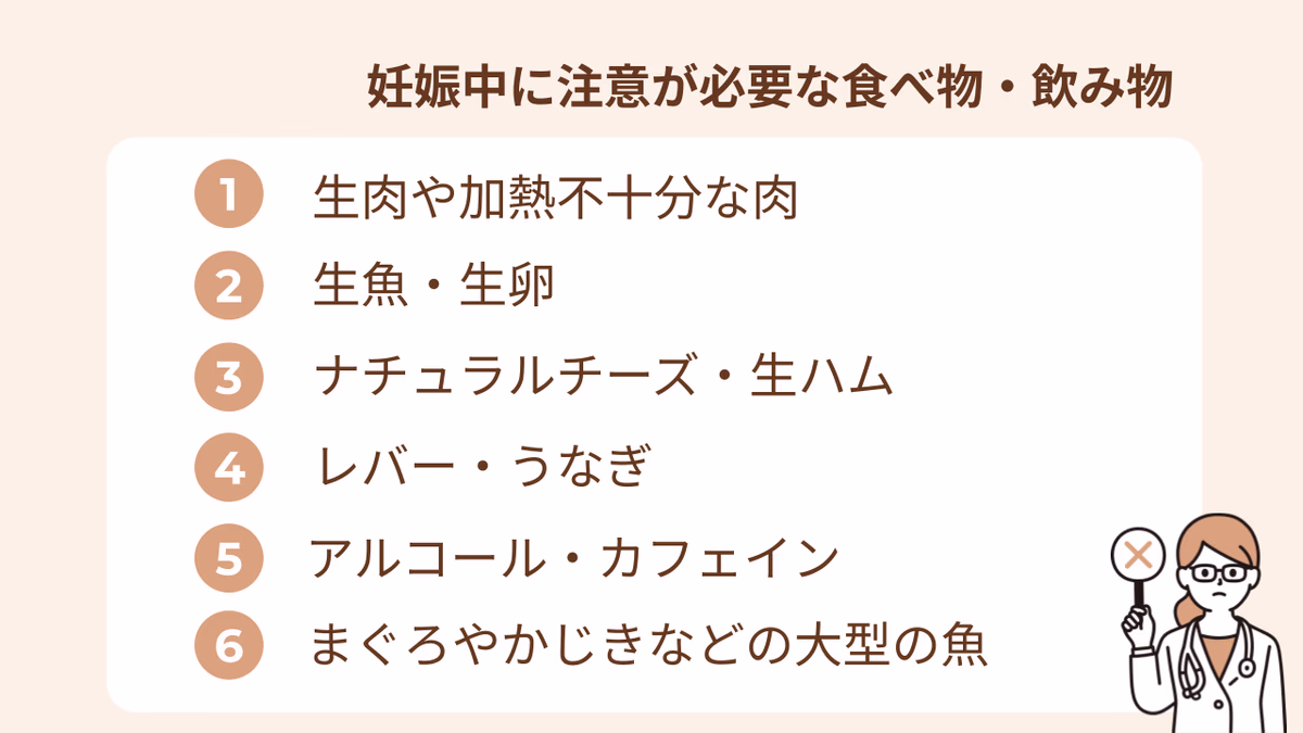 つわりの有無に関わらず、妊娠中は胎児への影響を考慮し、避けたほうが良い食べ物や過剰摂取に注意したい食べ物があります。