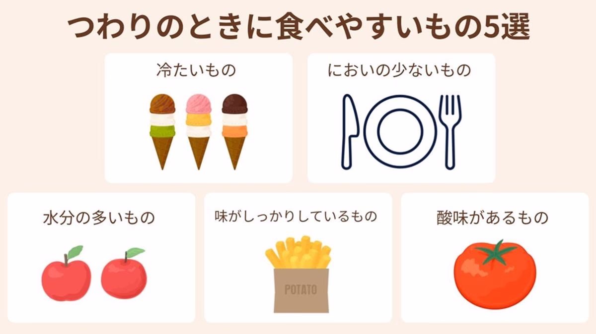 受け付けないものや余計に気分が悪くなるものを避けることで、食べられるものが見つけやすくなるでしょう。