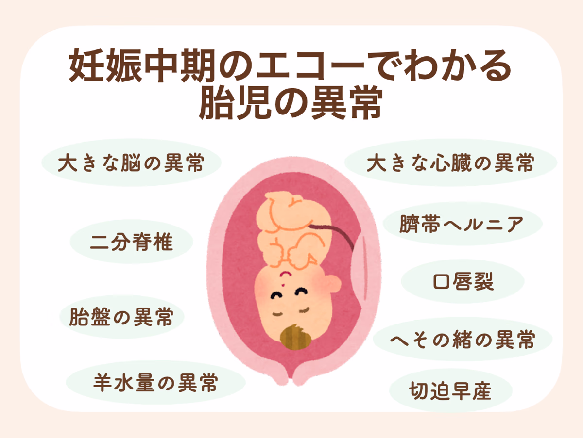 妊娠中期になると赤ちゃんのカラダはしっかりと大きくなってくるため、各臓器の異常などもわかるようになってきます。