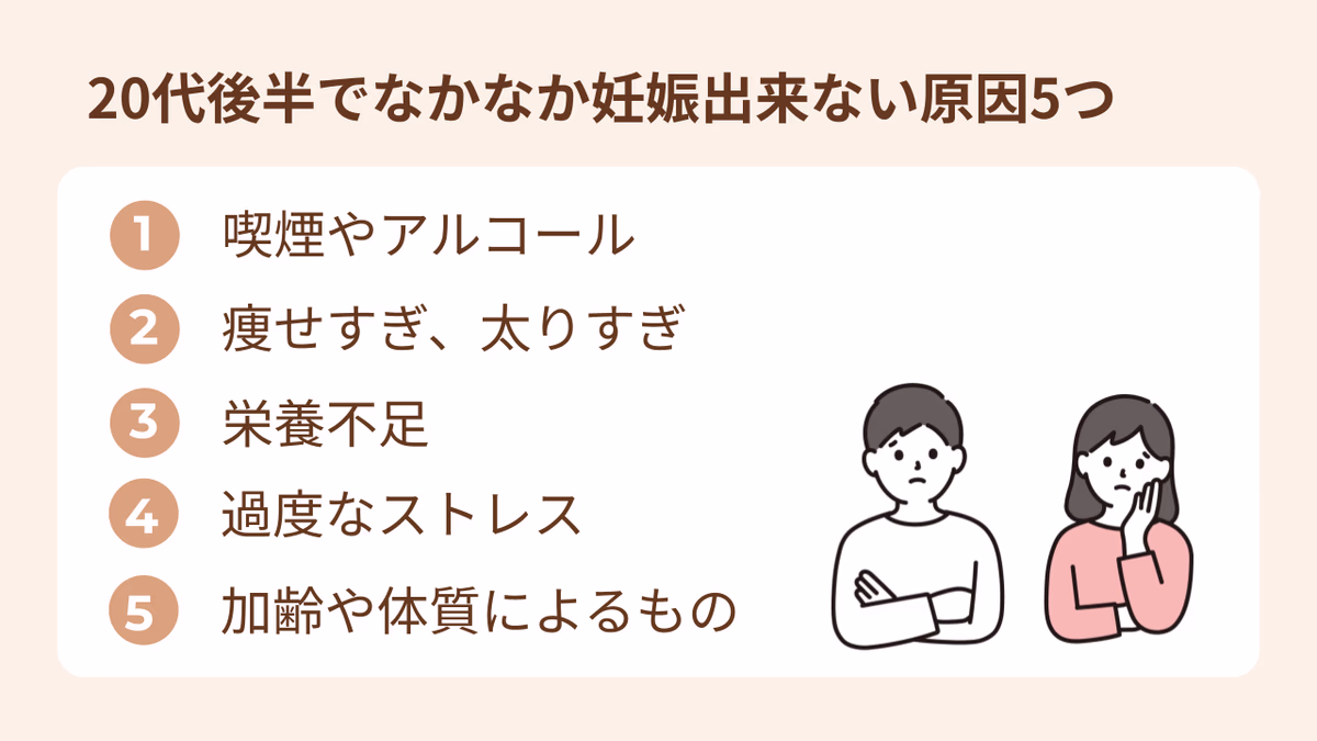 20代後半は、生殖機能が衰えはじめる年齢に差しかかるという点も、妊娠出来ない原因のひとつといえます。