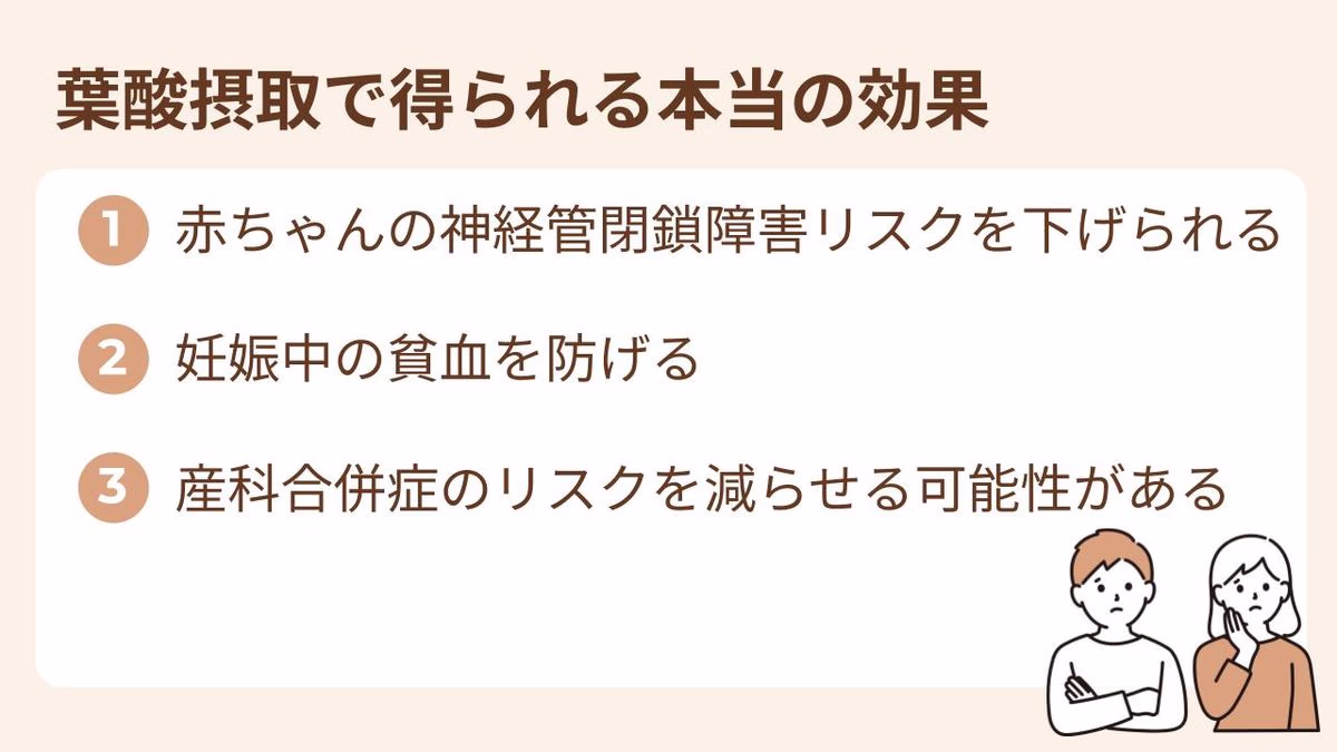 妊活中~妊娠初期に葉酸を摂らなかったときの影響については、こちらの記事でさらに詳しく紹介しています。